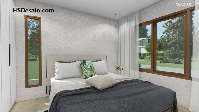 Each room is conceptualized with minimalism and simplicity, the selection of paint colors and bright furniture coupled with a large enough glass window makes the room look perfectly bright. In the window is also installed white curtains that rise to the roof this will make the room look high.