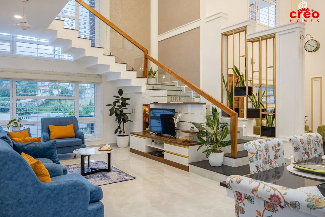 Rooms in Kerala houses are usually made bright and fresh by using several plants that are created as gardens under the stairs or simply placing plants in empty corners of the room. A room with an open space concept like this can be a beautiful idea to fill the interior of a Kerala home. A comfortable sofa in a beautiful color will become a focal point for your guests.